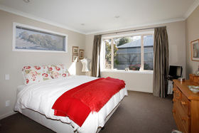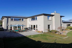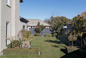 In a picturesque garden setting, professionally landscaped, easily maintained, incorporating rhodos, espaliered camellias and buxus hedges.