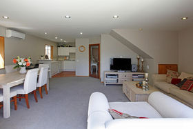 Well-proportioned open plan living (heatpump) flows to extensively paved and private courtyard.