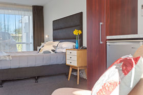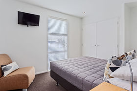 The large bedroom on the ground level has its own ensuite, fridge, lounge suite and opens up to it's own private courtyard.